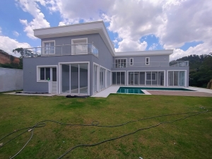 Esta casa  impressiona pelo design clean, grandes aberturas de vidro e excelente iluminação natural. A área externa é um verdadeiro convite ao lazer, com ampla piscina, terraço ao redor e um enorme jardim gramado.